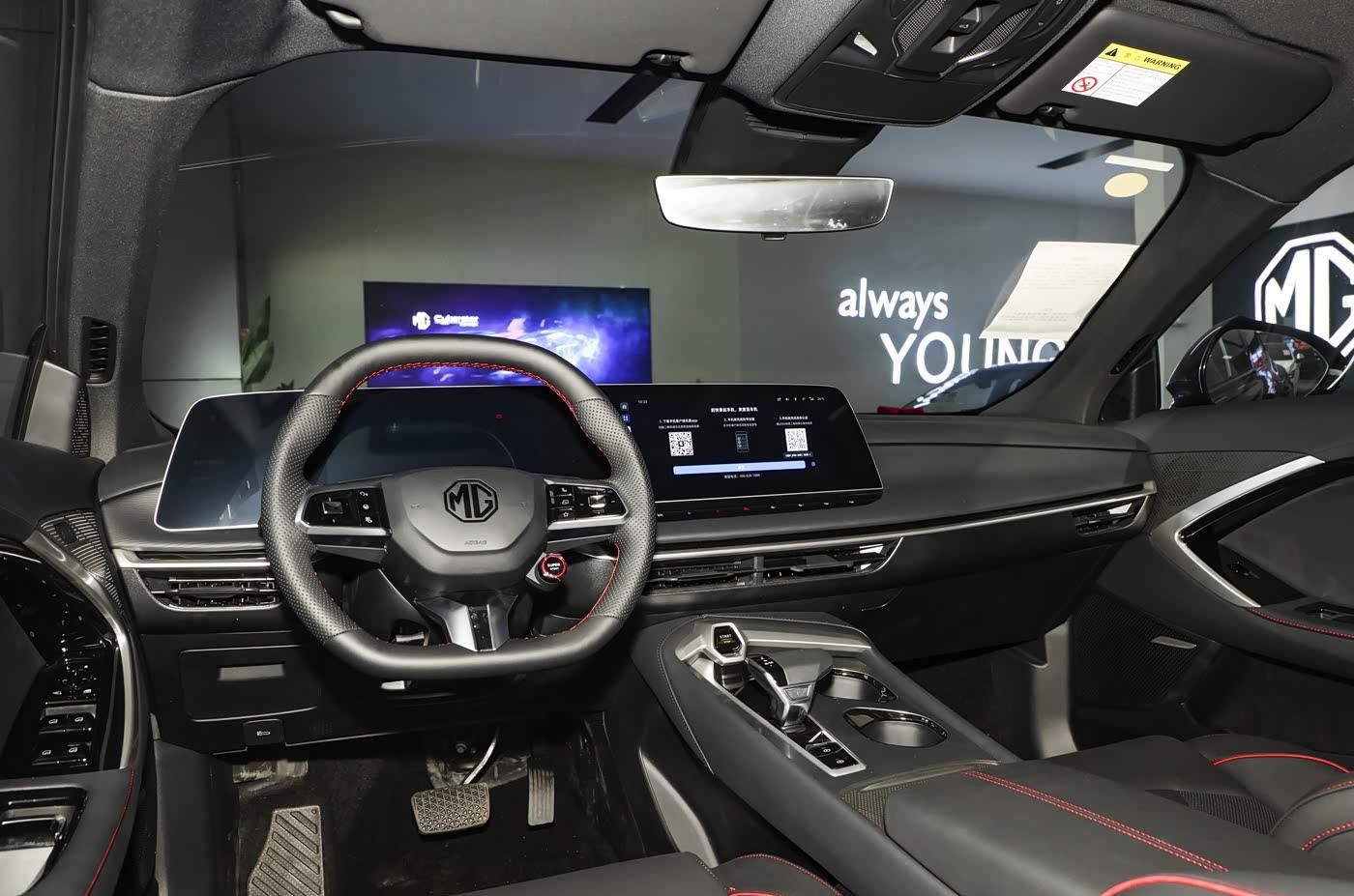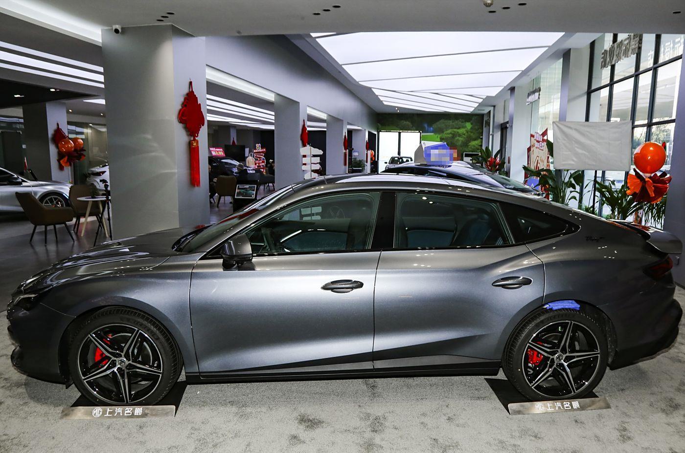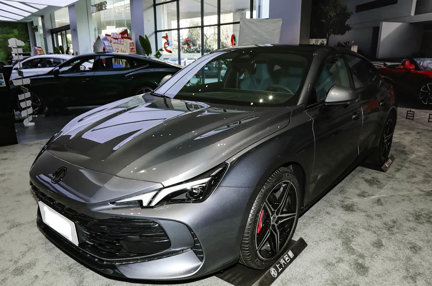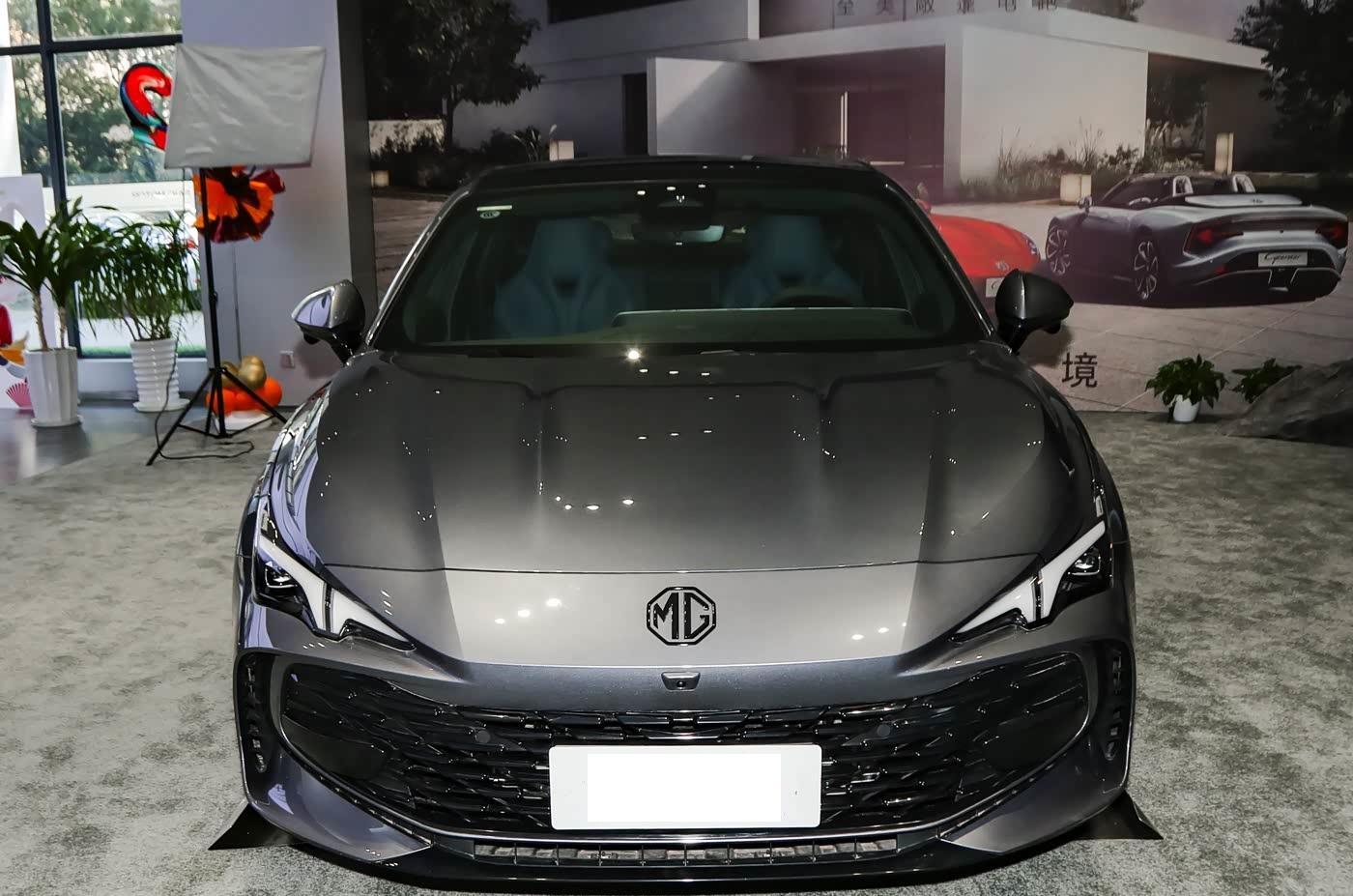 我们首先来看新车的外观设计方面,新车的前脸采用立体化数字格栅设计,上方镶嵌MG黑标徽章,而且机盖上方有着多条隆起的筋线设计,整体肌肉感有着明显的提升,而且搭配分体式LED大灯组(全系标配自适应远近光、延时关闭功能),营造出俯冲式运动姿态。格栅两侧的导流槽不仅优化空气动力学,更强化了性能轿跑的辨识度。大面积的熏黑中网底部更是有着突出的运动套件,更是彰显了新车的轿跑定位。