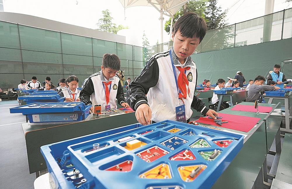 参赛选手在全国青少年科技教育成果展示大赛上进行智能电路与工程比赛。(资料图片) 新华社记者 陈欣波 摄