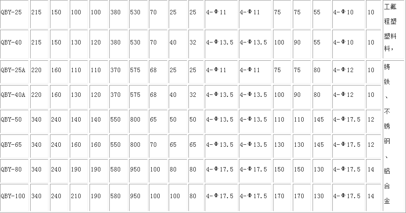 1、提油泵進出口口徑(寸);2、聯接方式(絲扣、法蘭);3、氣動隔膜泵流量(m3/h);4、QBY氣動提油泵泵體材料(鋁合金、鑄鐵、不銹鋼、塑料等);5、隔膜材質(橡膠、F4、F46等)。
